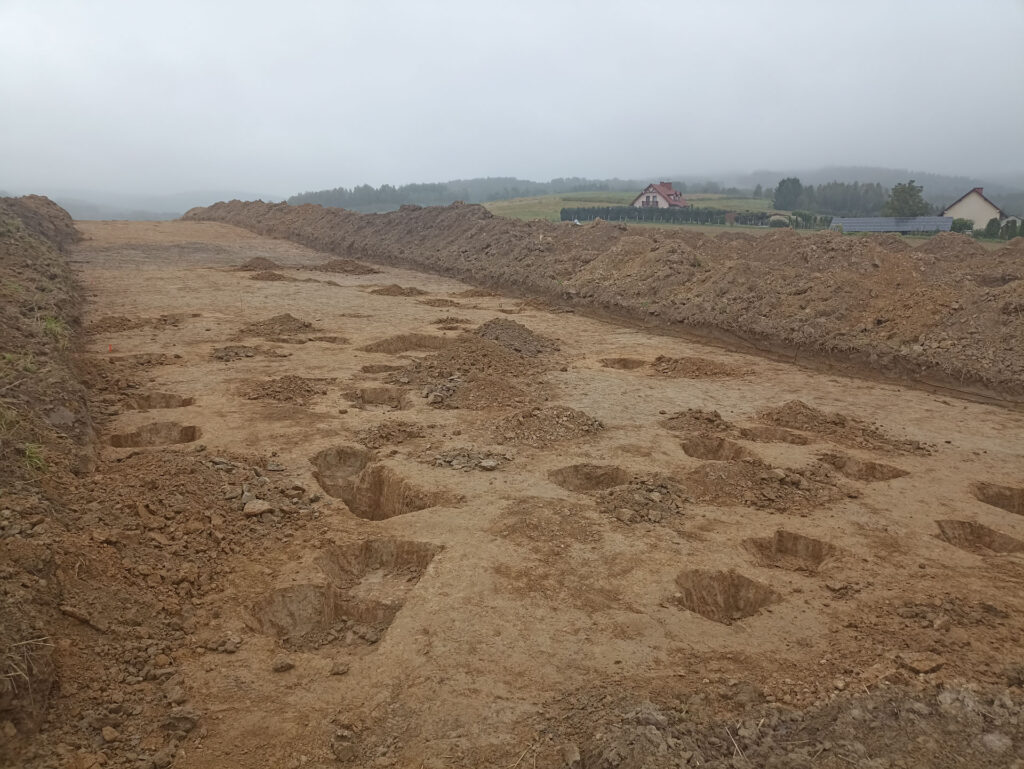 W dniu 15.09.2025 r. Archeologiczny Serwis Konsultacyjno-Badawczy Mirosław Kuś rozpoczął, na zlecenie Zamawiającego, archeologiczne badania wykopaliskowe na stanowisku nr 27 w miejscowości Lutcza. W dniu 13.10.2025 r. odbył się odbiór konserwatorski prowadzonych prac. Oceniono i odebrano obszar o powierzchni 35 arów, jednocześnie wskazując na konieczność poszerzenia zakresu badań w kierunku północnym i północno-wschodnim, w granicach terenu Inwestycji.